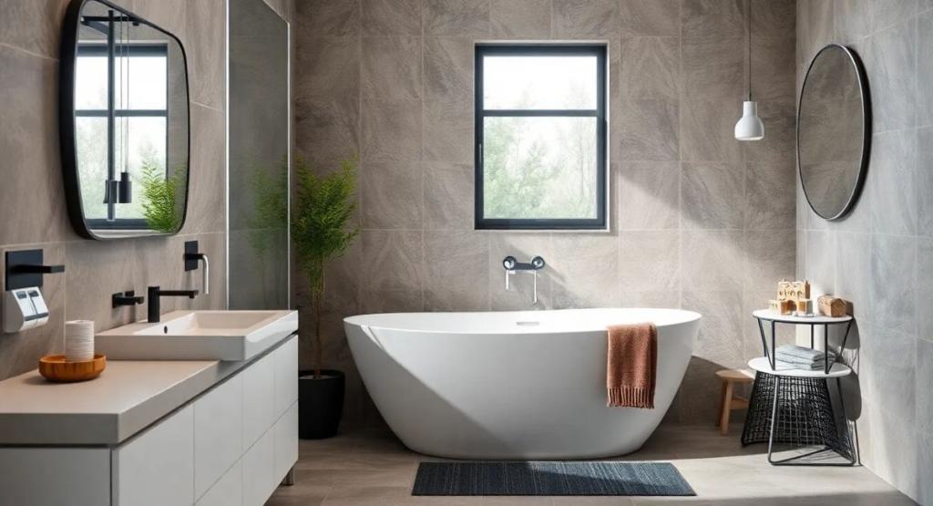 - Natürliche Materialien: Holz und Stein bringen Wärme und ein Gefühl von Natur ins Badezimmer.