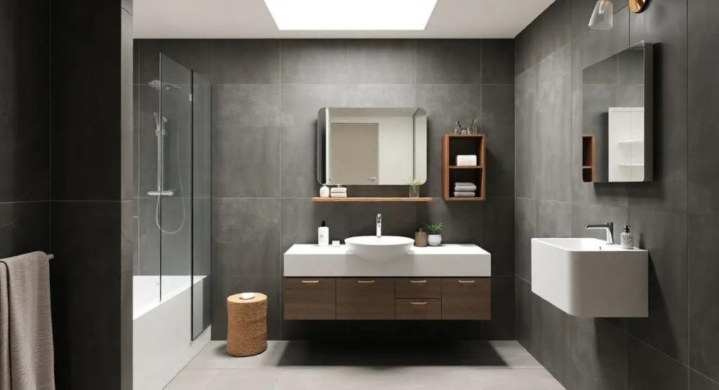 - Hängende Möbel: Nutzen Sie schwebende Waschbecken und Regale, um den Boden sichtbar zu lassen und den Raum größer wirken zu lassen.